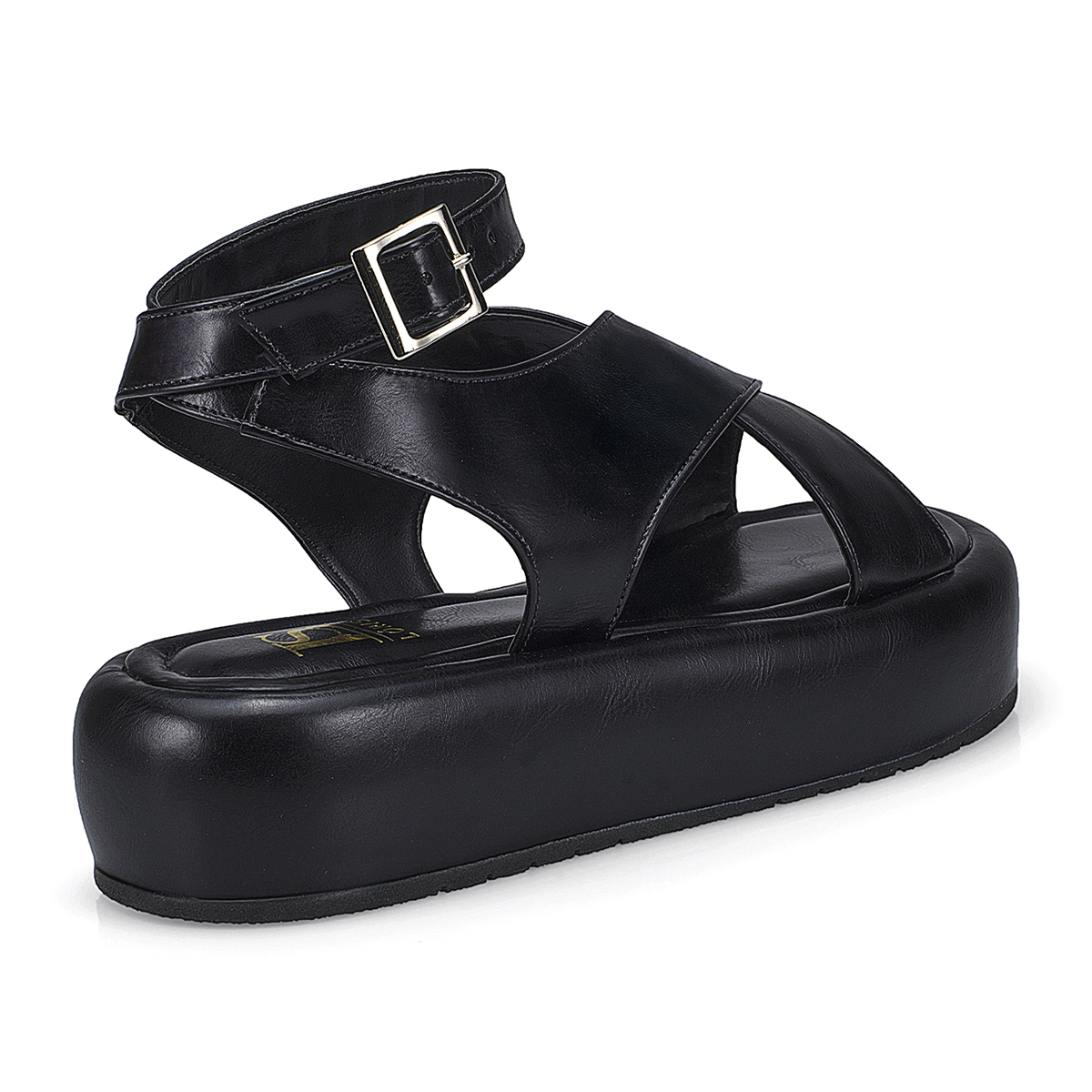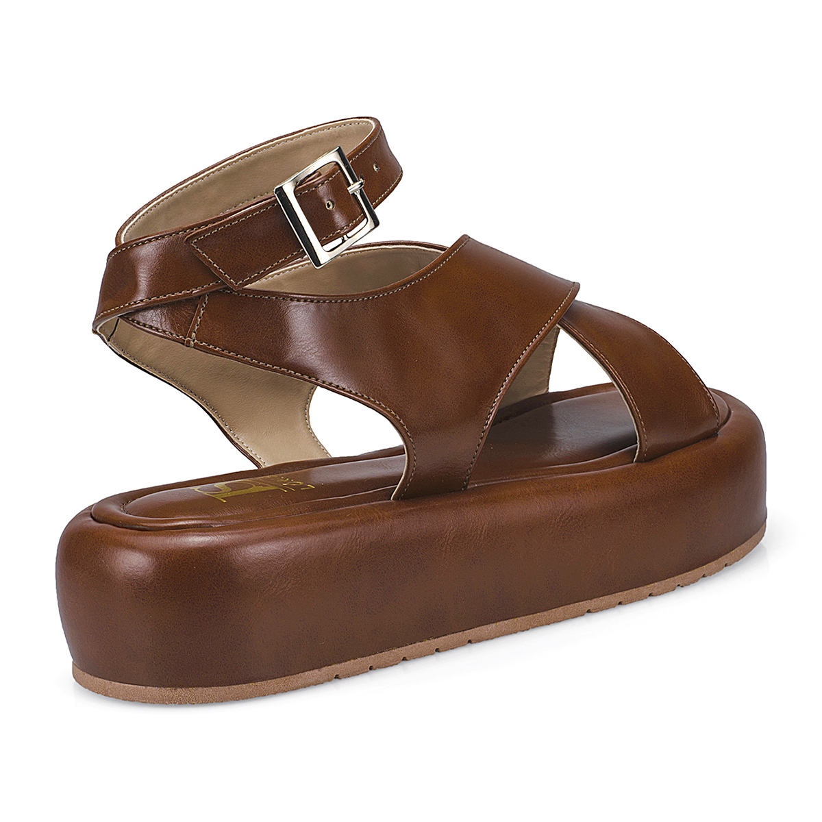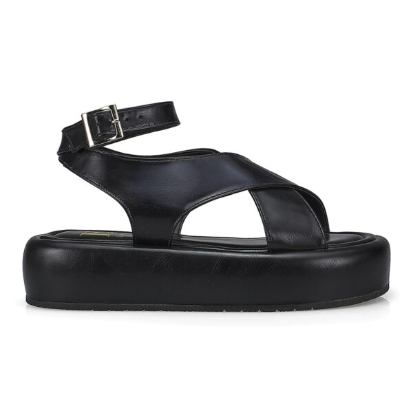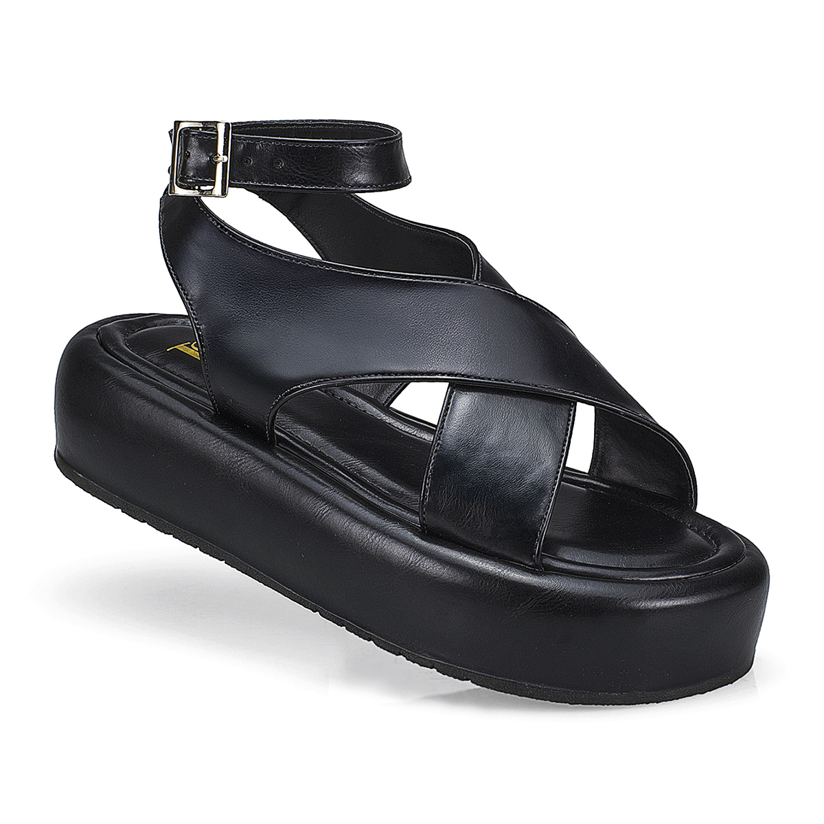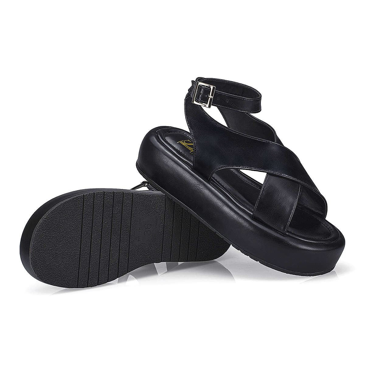 Sandália em plataforma com tiras largas cruzadas, trazendo um visual moderno e elegante para o dia a dia. O fechamento em fivela no tornozelo garante ajuste seguro, enquanto a palmilha macia e o solado robusto oferecem conforto durante o uso. Ideal para compor produções estilosas sem abrir mão da praticidade.