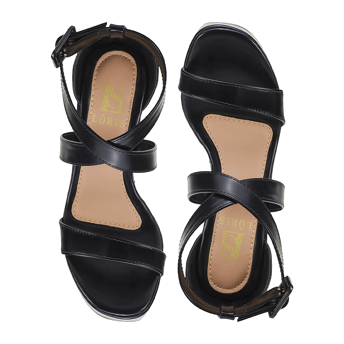 A sandália anabela preta é perfeita para quem busca estilo e conforto em um único calçado. Com design moderno, possui tiras cruzadas que valorizam o pé e garantem firmeza ao caminhar. O salto anabela traz elegância sem abrir mão da praticidade, ideal para compor looks casuais e sofisticados em diversas ocasiões.